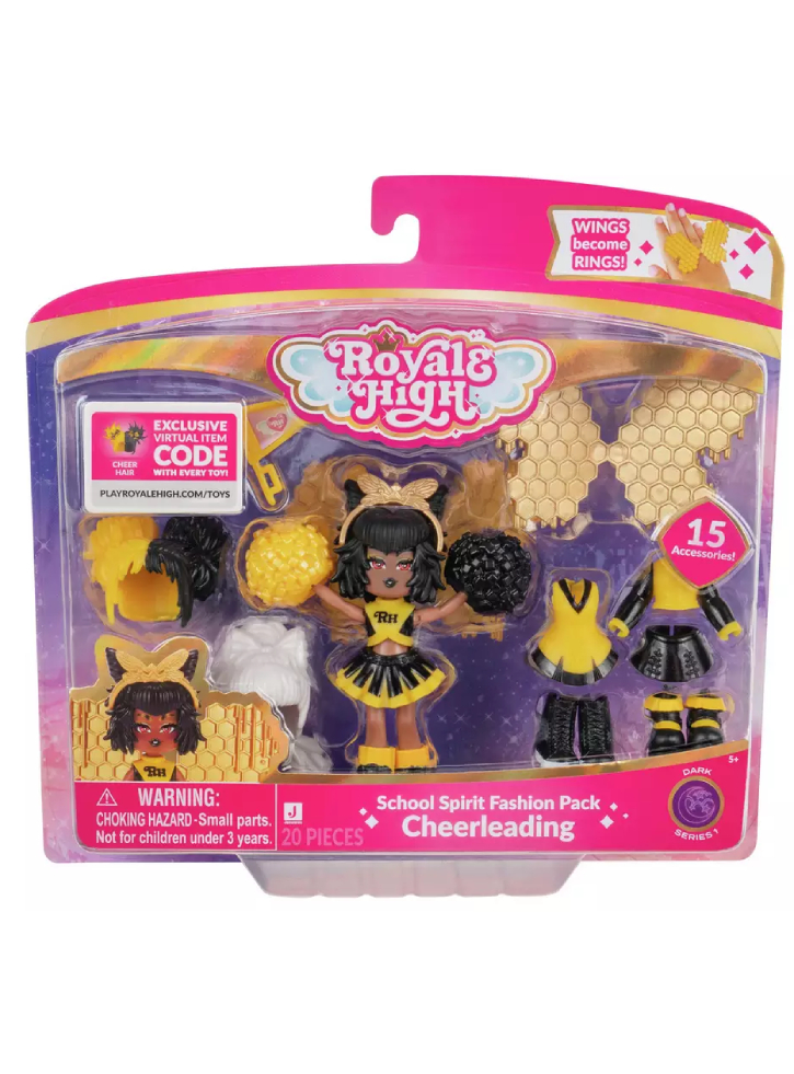 Păpușa School Spirit Fashion Pack de 3 inch inspirată din joc are 15 accesorii și aripi de zână care devin un inel de purtat.