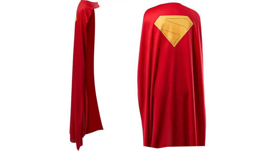 Pelerina costumului include o pelerină roșie lungă, confecționată din poliester.