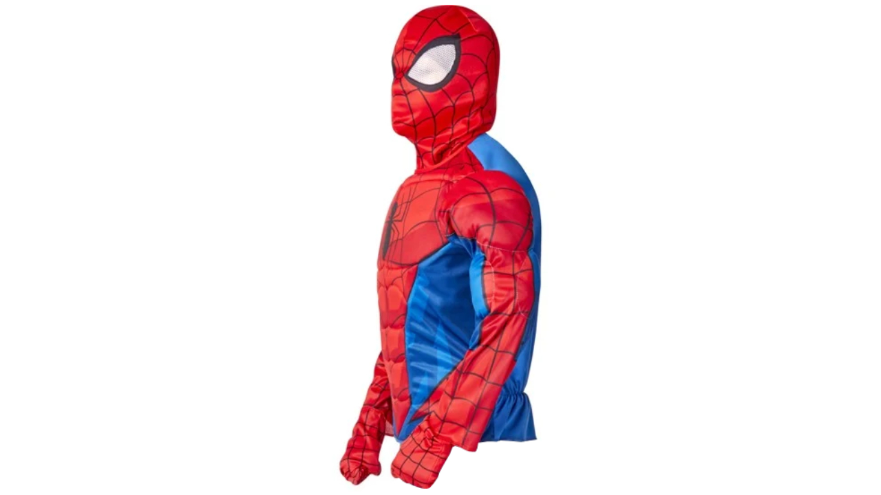 This superhero costume is designed for children between 4 and 7 years old and has an authentic spider-man.