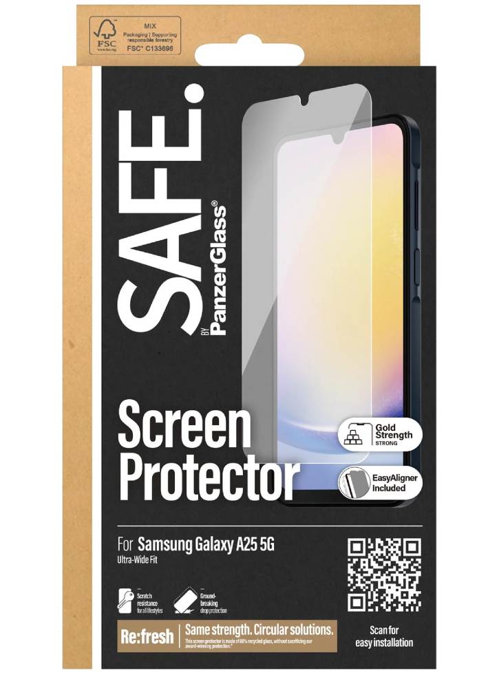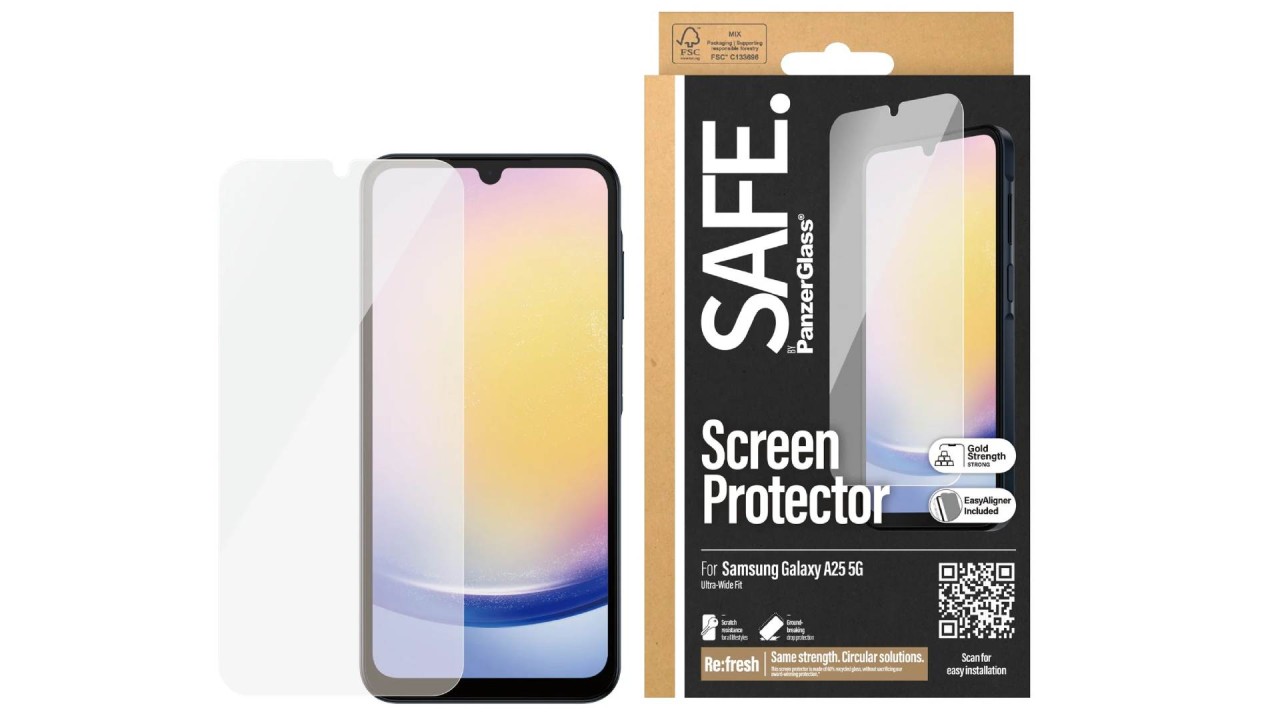 Această protecție pentru ecran SAFE. by PanzerGlass, fabricată din 60% material reciclat, acționează ca un airbag discret, protejându-vă telefonul prin absorbția impactului și oferind rezistență la zgârieturi de nivel înalt.