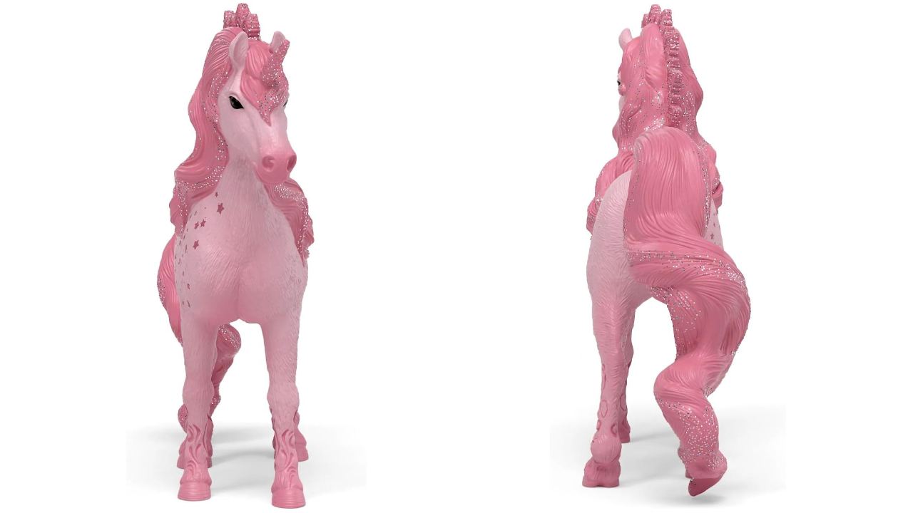 Cu blana ei roz, coama strălucitoare și coada sclipitoare, arată ca o constelație.