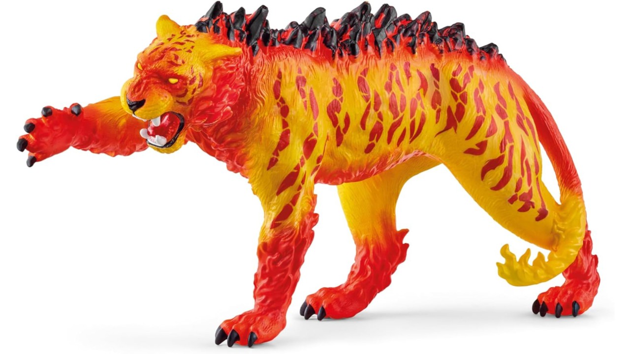 Ferește-te de tigrul de lavă. Cu privirea sa arzătoare și un temperament înfierbântat, Tigrul de lavă este gata să-și croiască drum în poveștile de joacă ale copiilor.