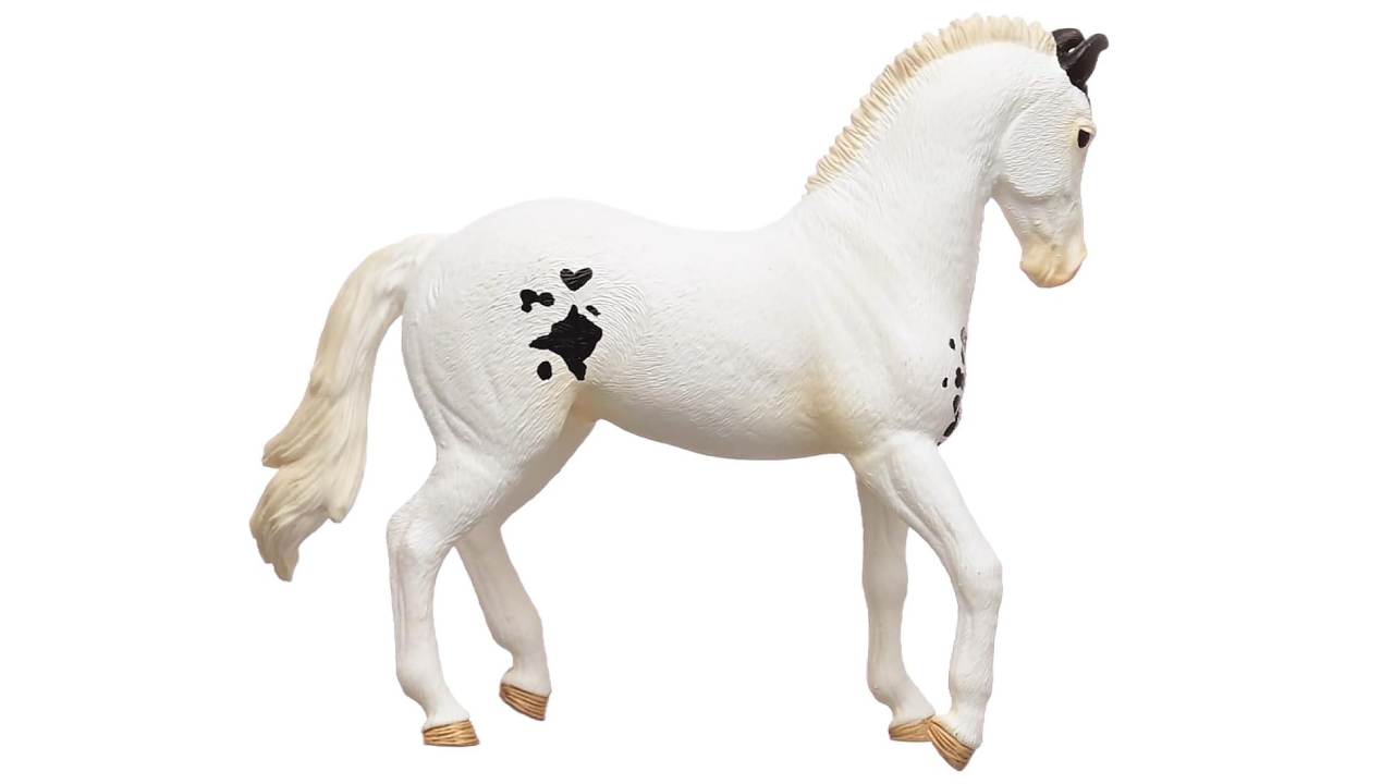 Blana sa este albă ca zăpada, cu doar câteva pete negre pe piept și pe flancuri.