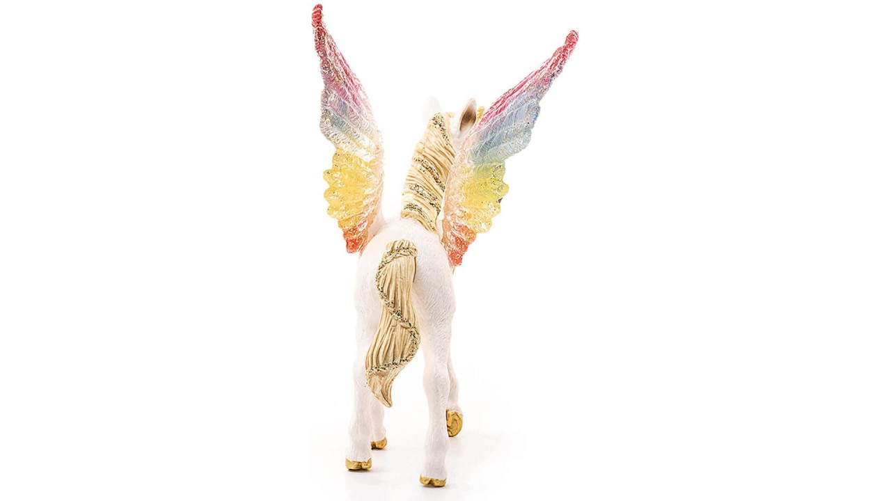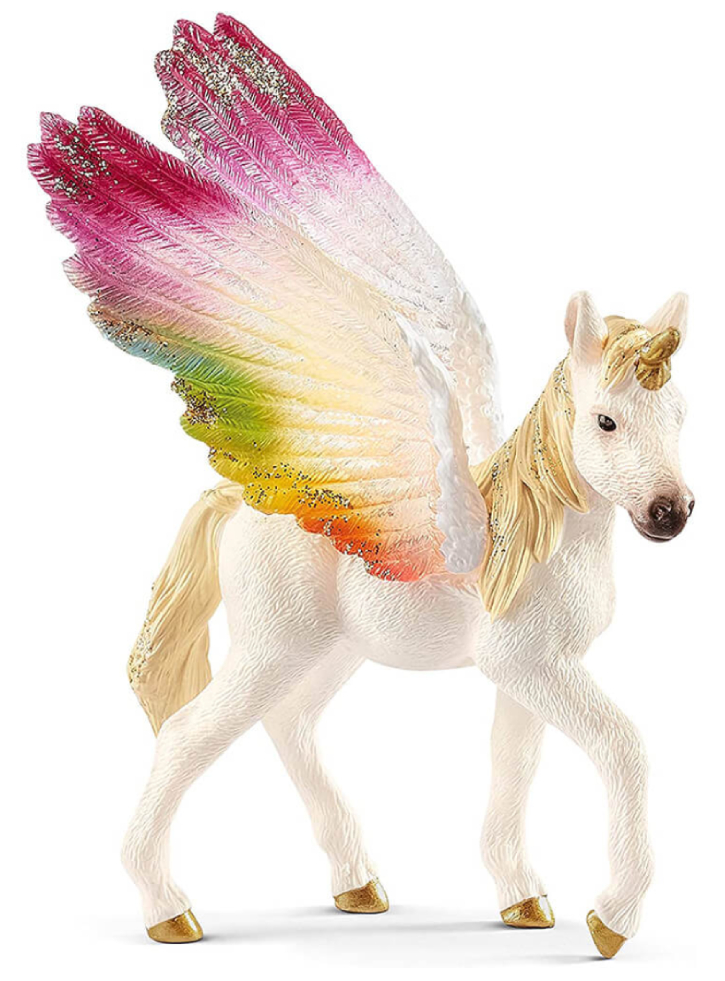 Schleich Winged Rainbow Unicorn, Foal (70577) este o figură detaliată și uimitoare din colecția Schleich, reprezentând un mânz unicorn cu aripi, în nuanțe de curcubeu.