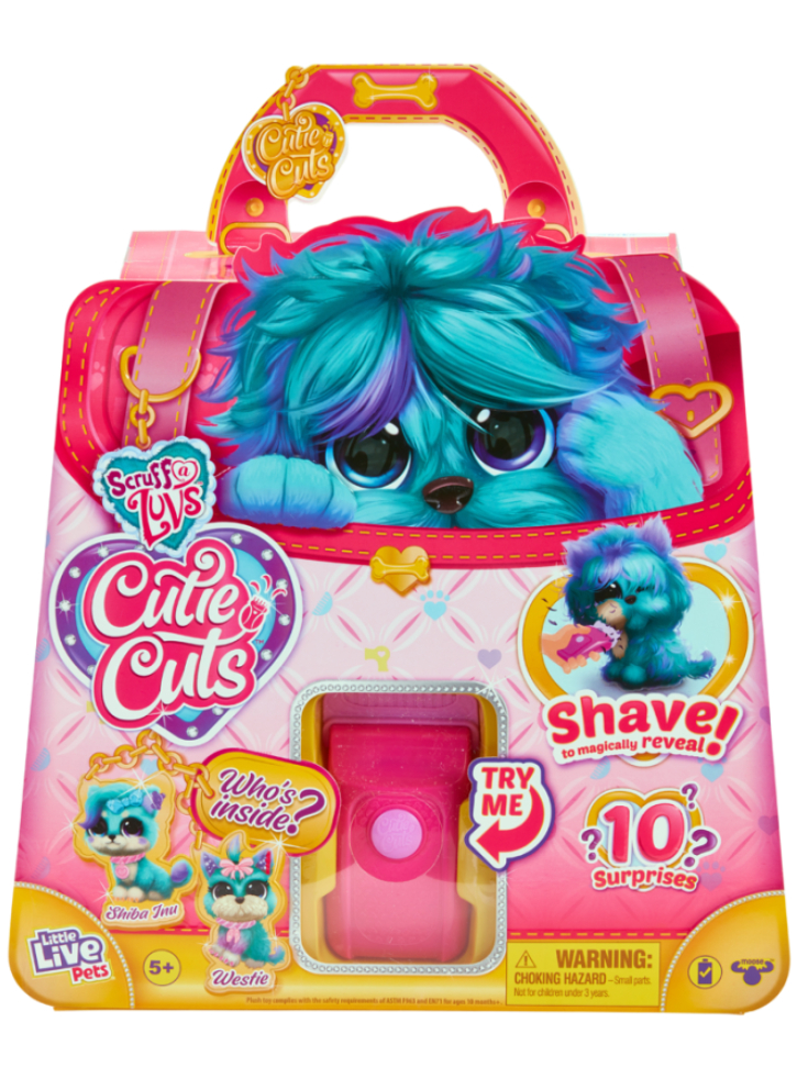 Descoperă un salon plin de surprize cu Scruff-a-Luvs Cutie Cuts, transformă-ți Scruff-a-Luv din cățel neîngrijit în cățel răsfățat.