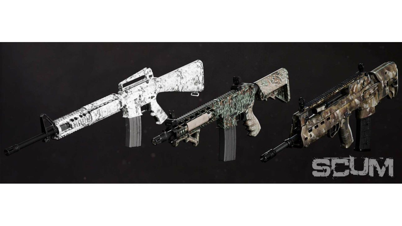 Introducing the SCUM weapon skins pack! This cosmetic DLC will let you customize your weapons to better camouflage them – or just express your personality. With 14 patterns to choose from, each of them customizable with different paints, the sky is the limit on how your weapon can look.