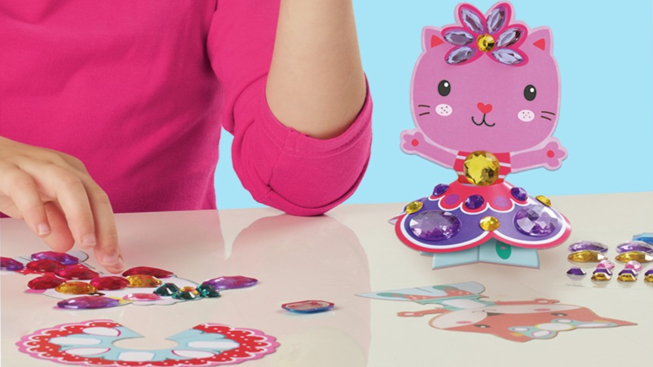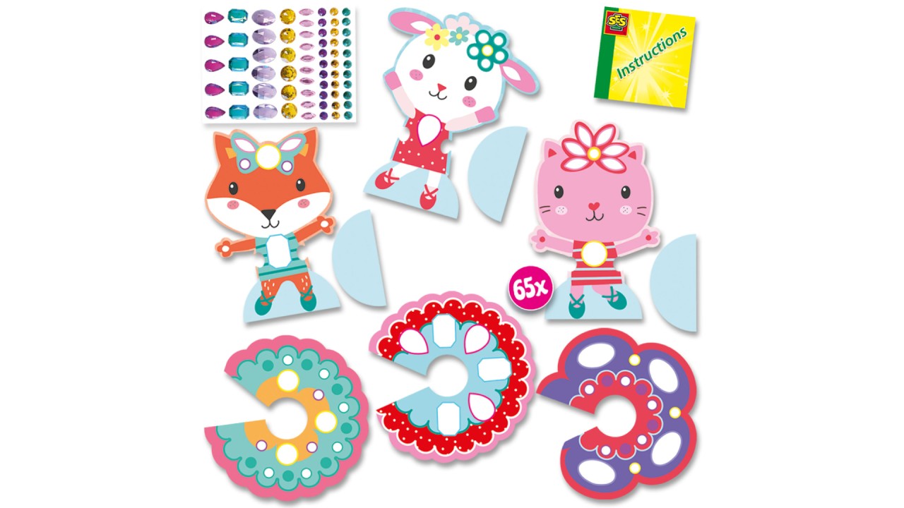 Perfectly suitable for children between the ages of 3 and 6, this kit allows the gloves to explore their artistic side by decorating the adorable animal figurines a cat, a sheep and a fox, with large, self -adhesive diamonds.