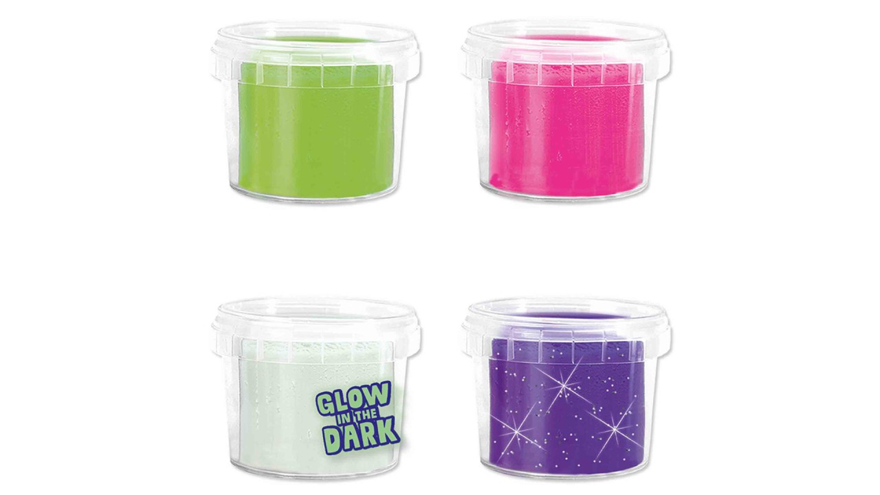 Plasticine is shiny, soft and can be easily reused thanks to the resealable and practical bowls.