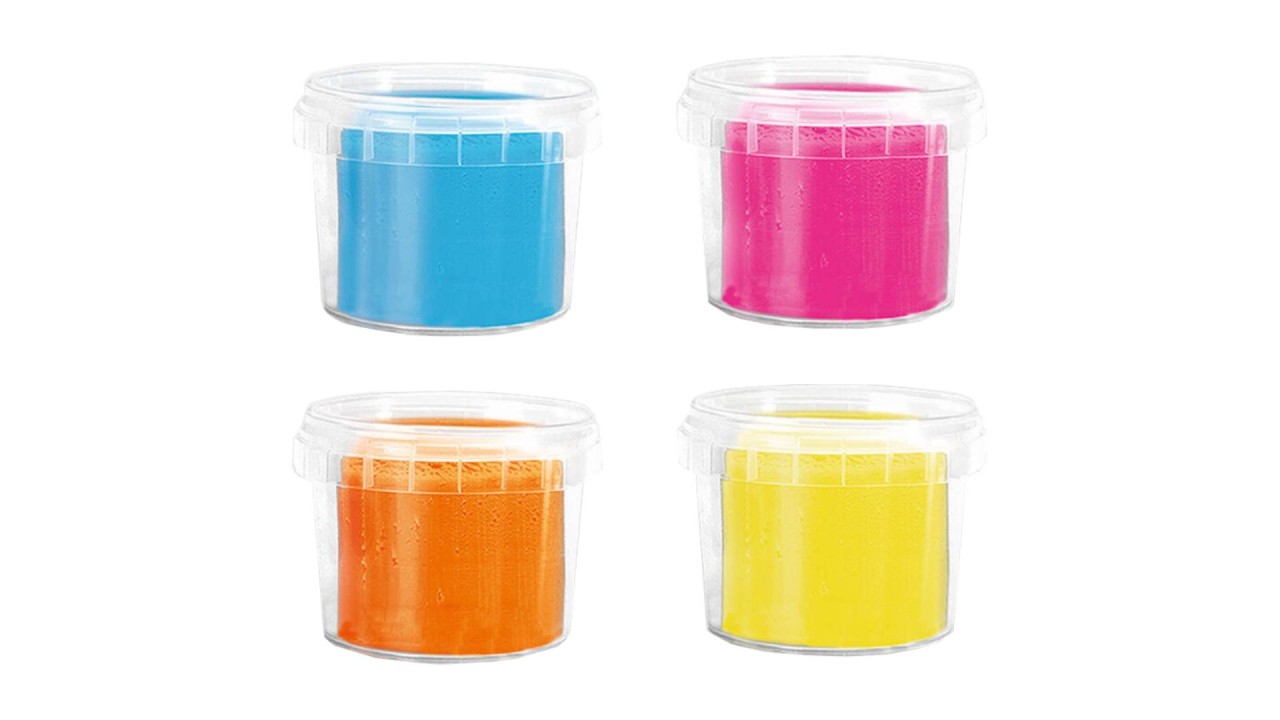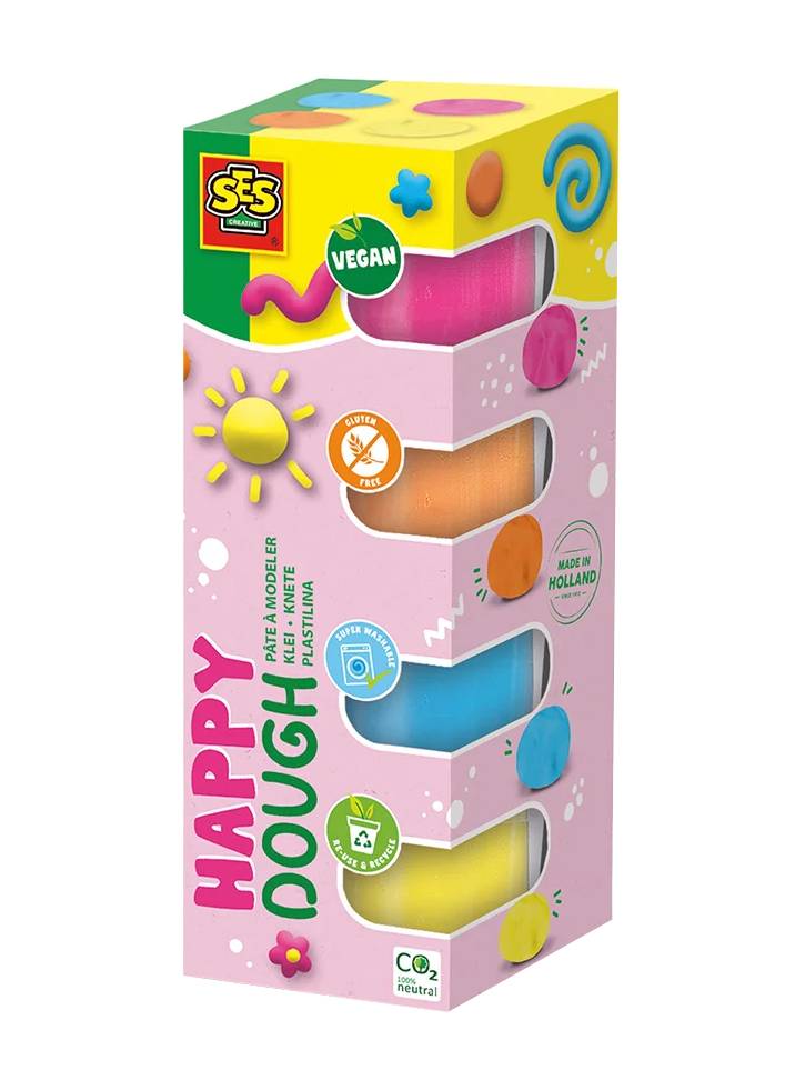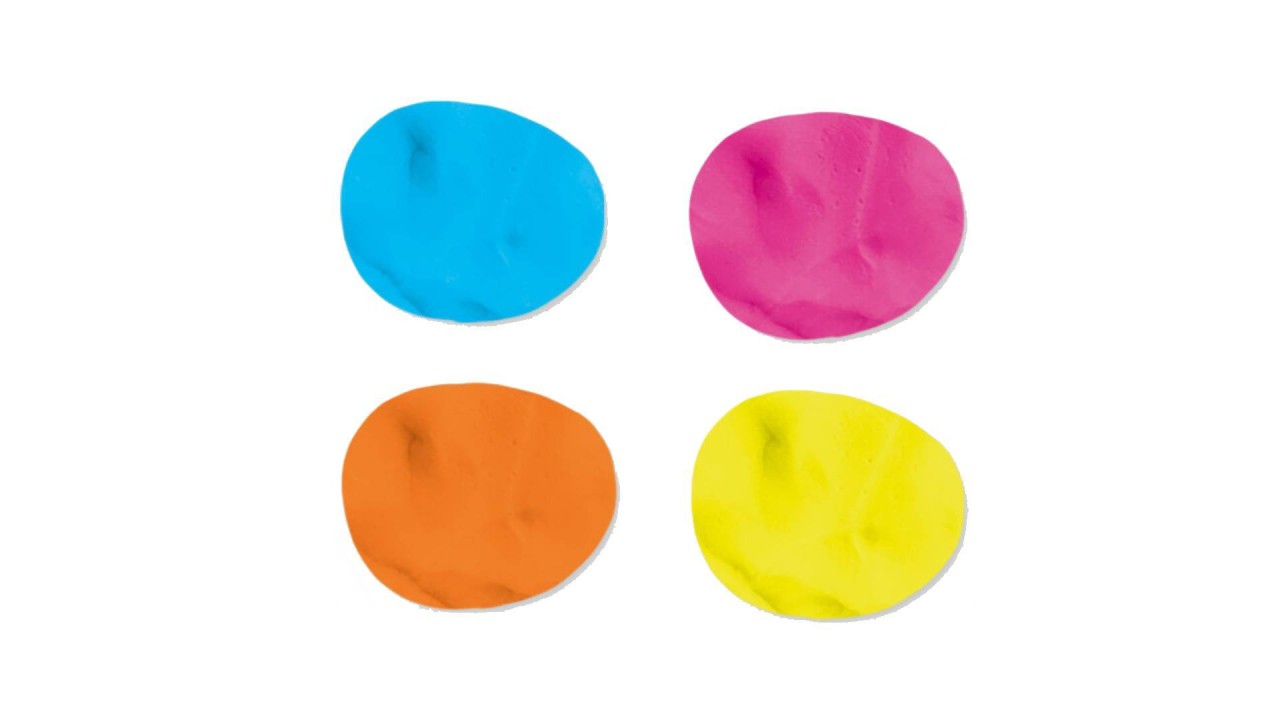 Plastilina de la SES în patru variante vesele. Este 100% vegană, fără gluten și lavabilă.