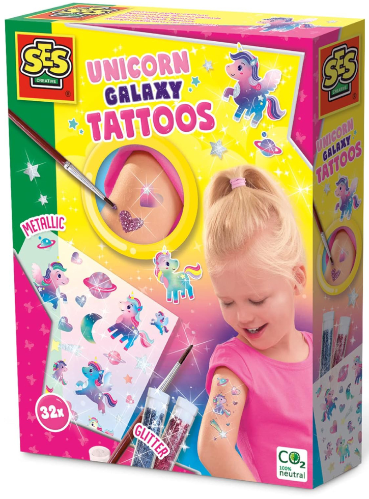 Acest set de tatuaje unicorn galaxy nu numai că le permite copiilor să își lipească tatuaje cool pe brațe și picioare.