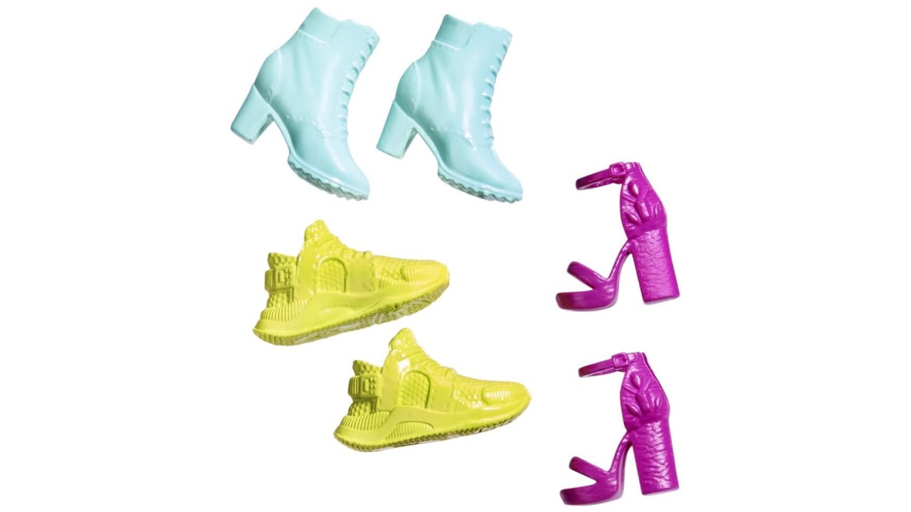 Setul de accesorii include cinci perechi minunate de pantofi potriviți pentru păpușile Curvy și Tall!