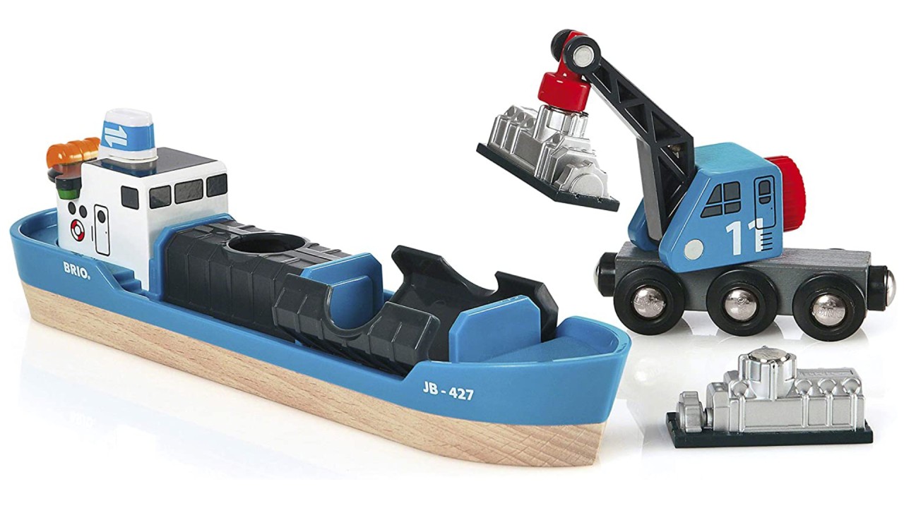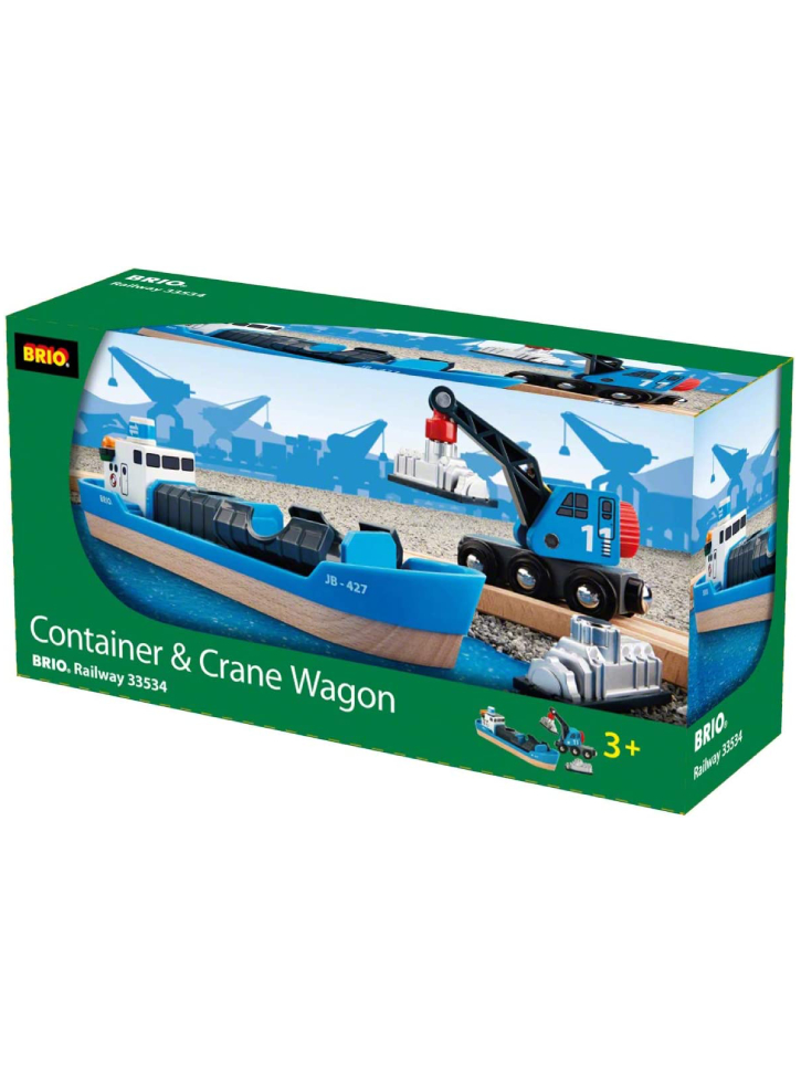 Start your budding train engineer on the right track or expand your collection with a container ship wagon and crane.