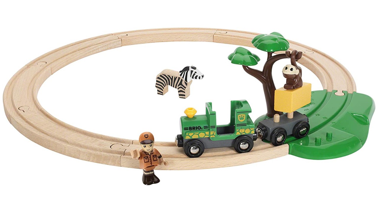 Setul Safari Railway vine cu șine, un tren, o maimuță, o zebră, un copac și multe altele!