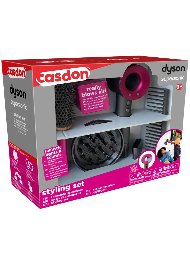 Adevărata vedetă a acestui spectacol este uscătorul de păr Supersonic, care, la prima vedere, poate fi ușor confundat cu un Dyson Supersonic adevărat.