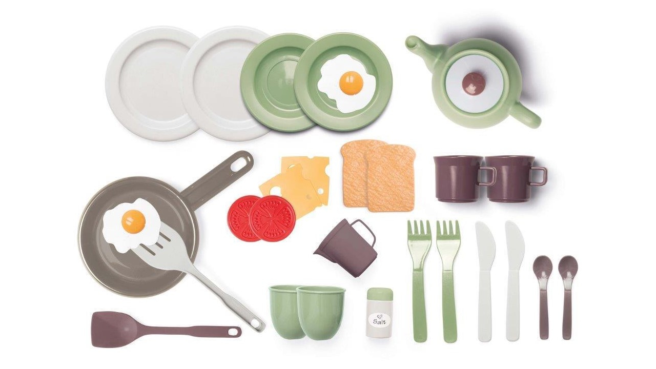 Setul este format din pâine, ouă, brânză și o tigaie pentru gătit. Setul este potrivit pentru joaca în interior și în exterior.