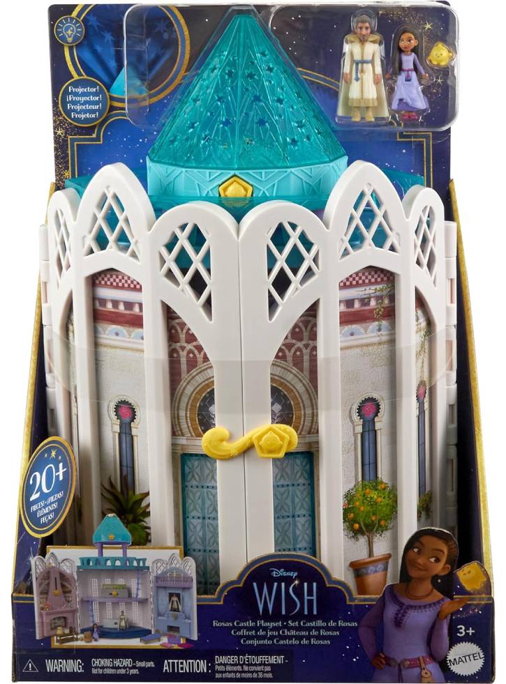 Intră în castelul regelui Magnifico cu setul de joacă Disney’s Wish Rosas Castle. Fanii pot aduce filmul la viață cu mini păpuși King Magnifico și Asha, 20 de accesorii de povestire, joc la 360 de grade si cinci zone de joacă.
