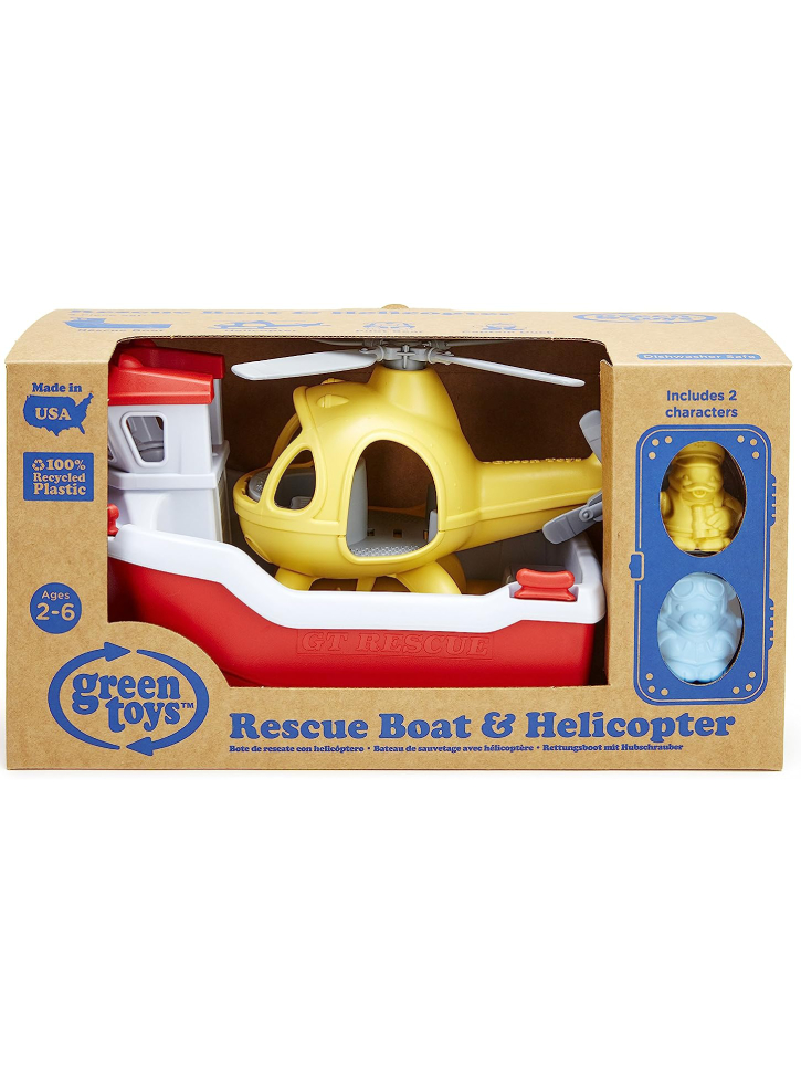 Barca de salvare și elicopterul Green Toys este gata să salveze ziua pe mare!