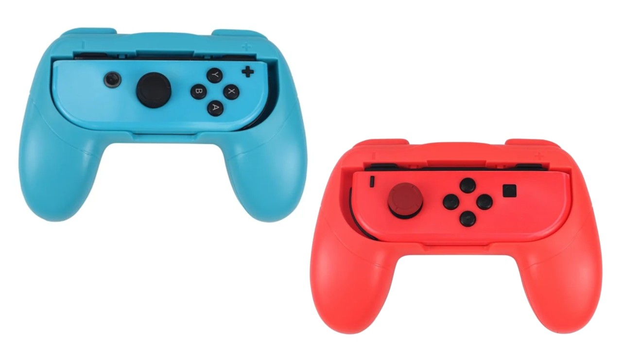 (Joy-cons nu sunt incluse) Kitul Grip 'n' Play Controller Kit include 2x mânere de controler (1 Neon Red și 1 Neon Blue) și 2x mânere pentru degetul mare (1 Neon Red și 1 Neon Blue) concepute pentru a se potrivi cu controllerele Nintendo Switch Joy-con.
