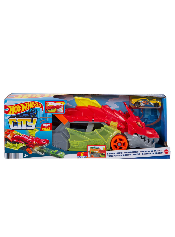 Dragonii obișnuiți scuipă foc, dar Dragonul orașului Hot Wheels scuipă din gură vehicule Hot Wheels pentru o distracție grozavă și emoții de zile mari.