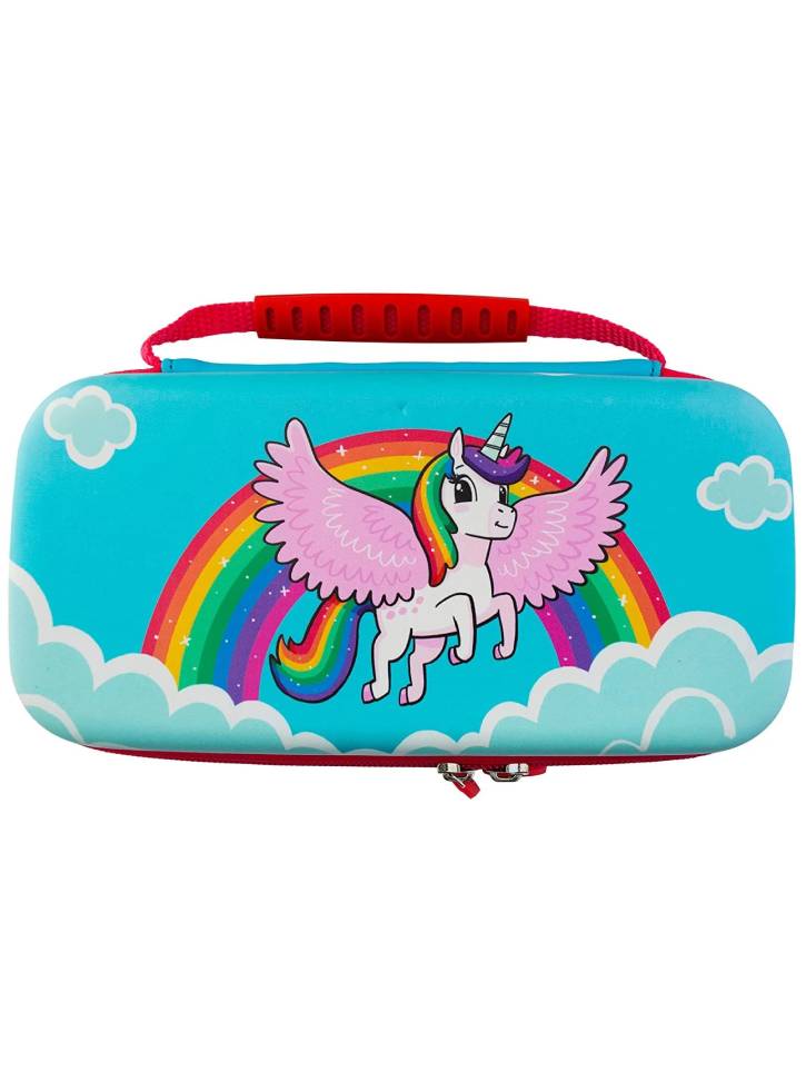 Toate articolele pot fi depozitate în interiorul husei de călătorie robuste, cu un design elegant Unicorn, precum și cu spațiu de depozitare suplimentar pentru până la 10 carduri de joc Nintendo Switch.