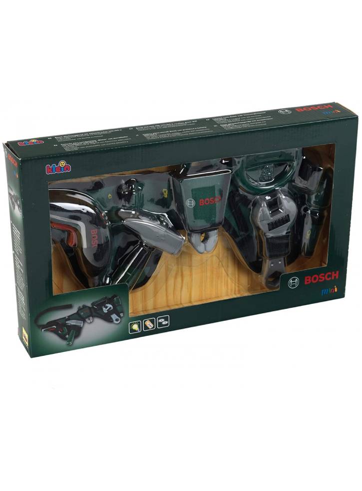 Setul contine: centura din material textil, surubelnita cu baterii si cu biti interschimbabili (miscare inainte/ inapoi si are functie luminoasa), ciocan, patent, ferastrau, cheie, surubelnita.