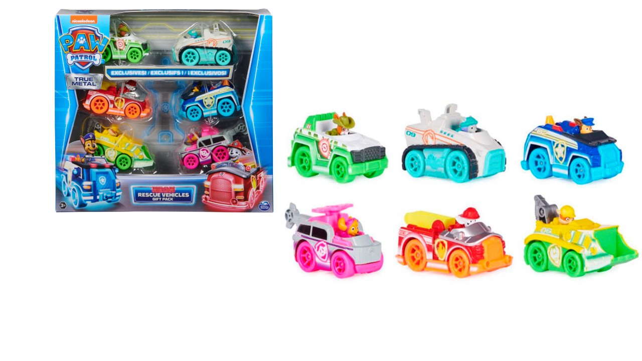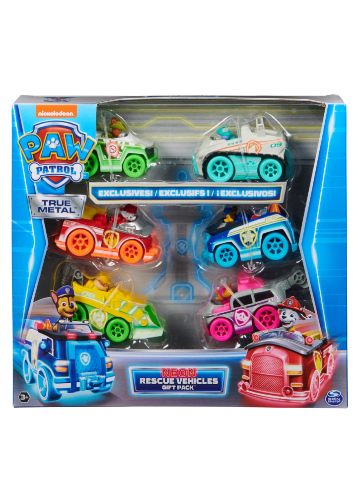 Cu fiecare cățel modelat în interiorul vehiculului său, cu urechile fluturând în vânt, alergând spre salvare, Pachetul cadou Vehicule de salvare cu neon este modalitatea perfectă de a colecționa instantaneu toate vehiculele True Metal.