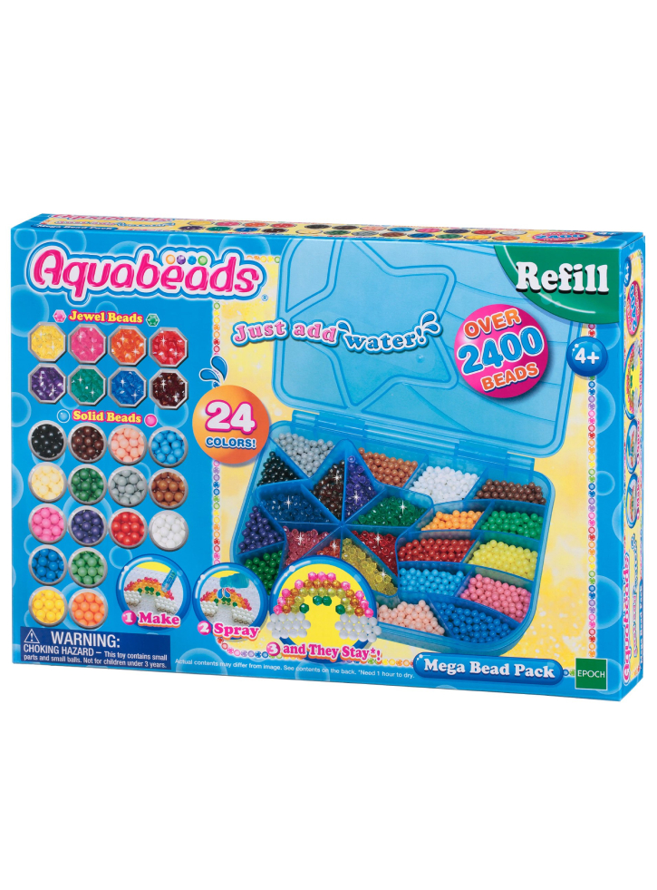 Pachetul de mărgele Aquabeads Giant conține peste 2400 de mărgele în 24 de culori.
