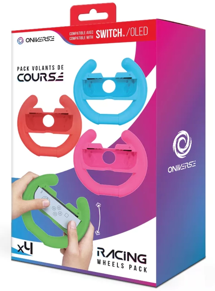 Acest pachet conține 4 roți de curse în care puteți face clic pe controlerele Joy-Con.
