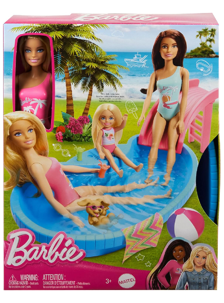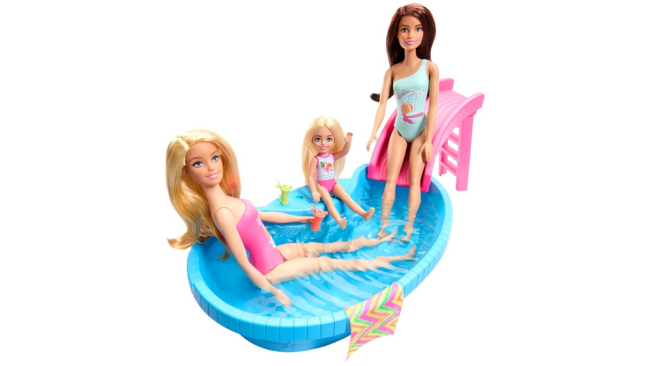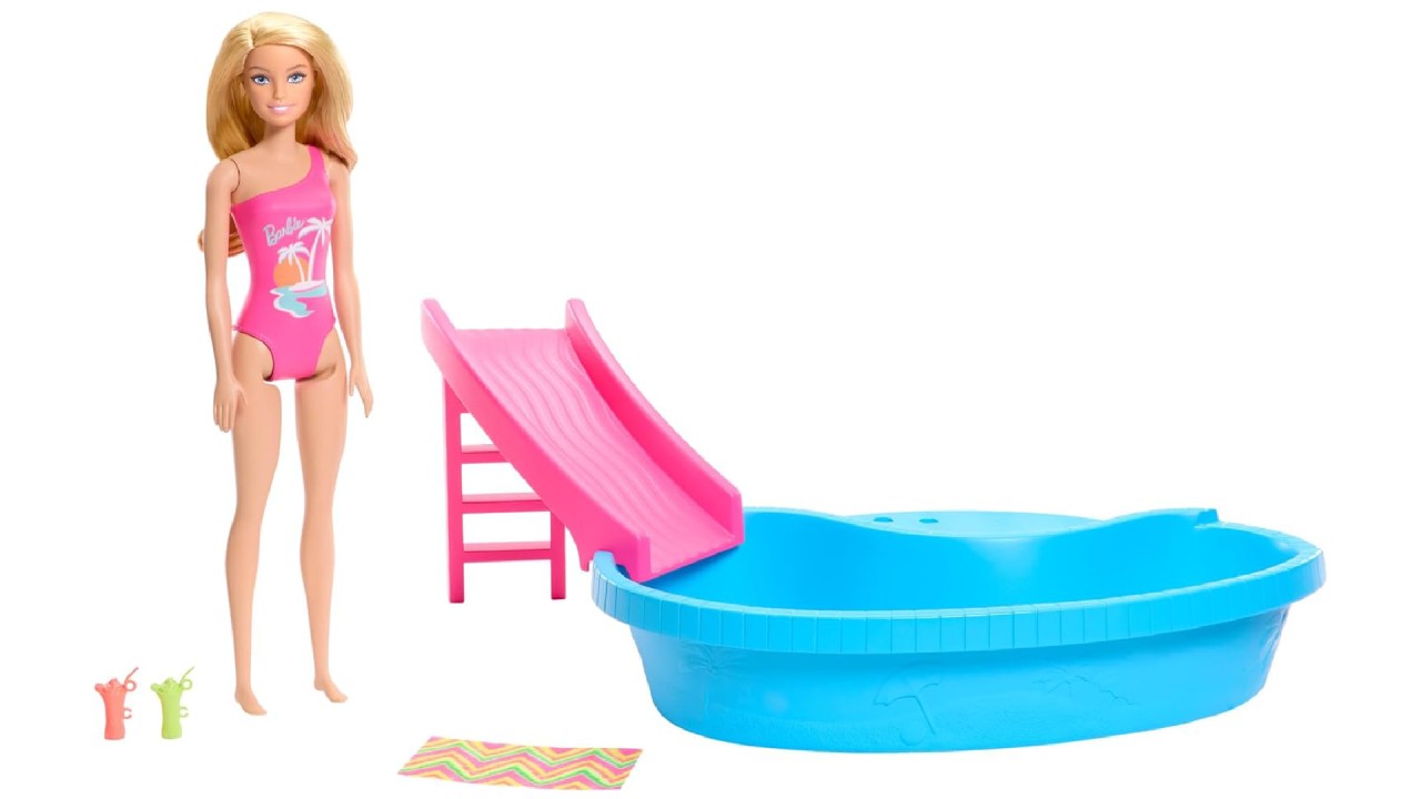 An easy-to-fill and empty pool, with room for Barbie and her friends (sold separately), is perfect for a summer party!