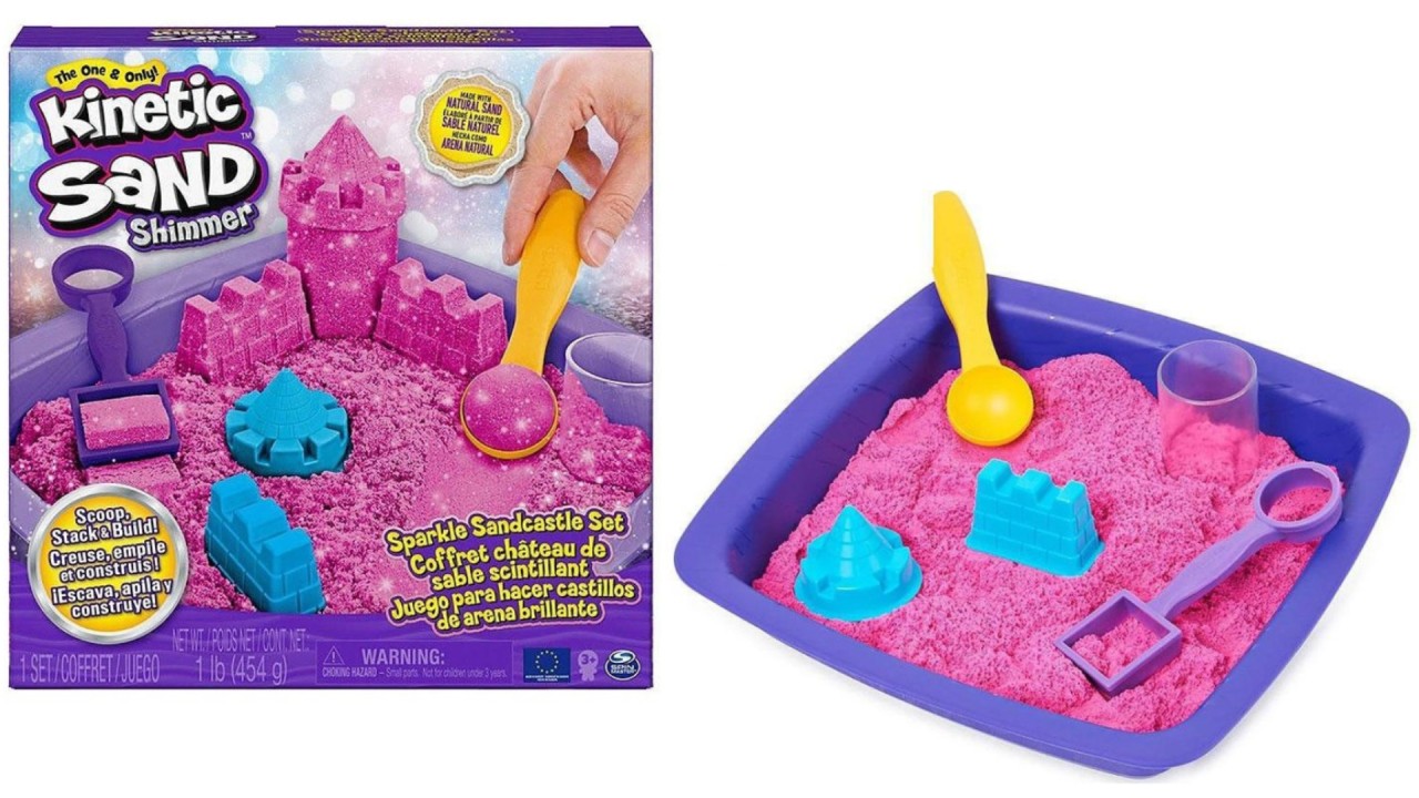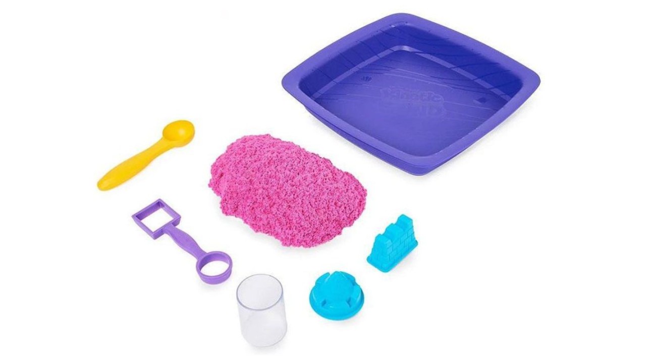 Acest set de castele de nisip Kinetic Sparkle Sandcastle include chiar și o tavă de nisip pentru o joacă izolată, perfectă pentru interior.