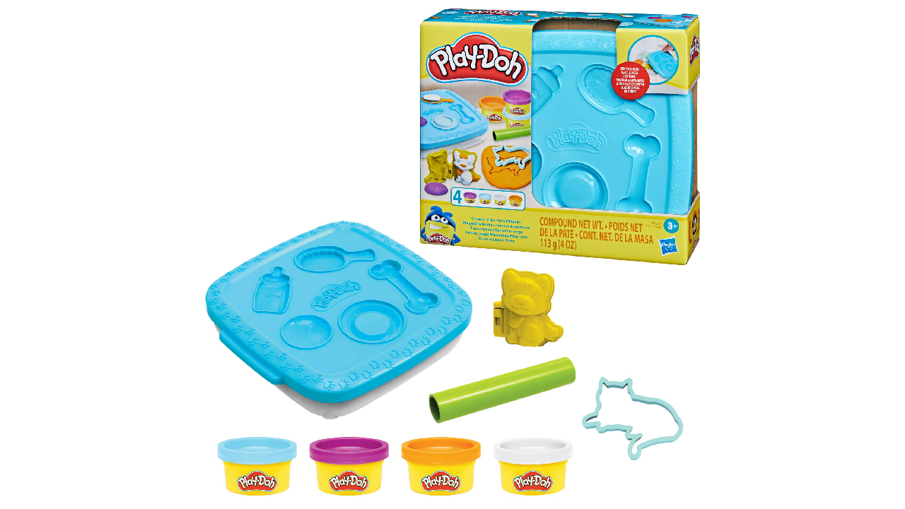 Fiecare set tematic include 4 borcane de pastă de modelare Play-Doh în culori asortate, precum și o varietate de unelte și matrițe.