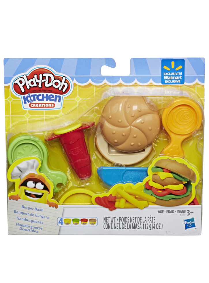 Pur și simplu modelează un burger Play-Doh, pune-l pe chiflele de plastic și fii creativ!