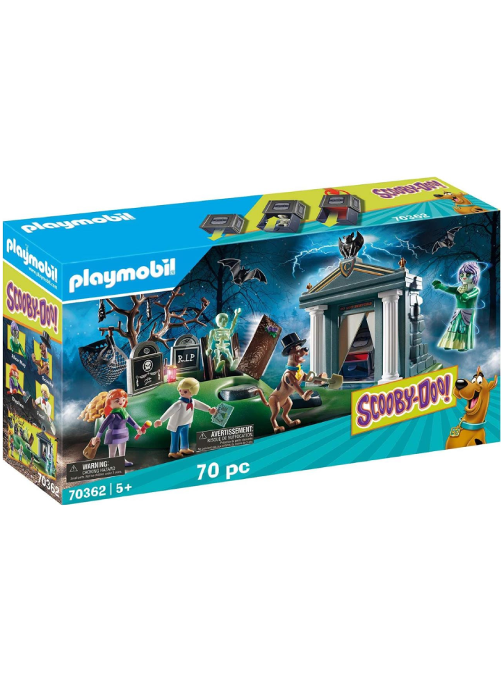 Include Scooby-Doo într-un costum de gropar, Fred, Daphne, fantoma Alice May, un schelet care strălucește în întuneric, un mormânt, un sicriu trucat, o carte cu fantome și multe alte accesorii pentru cimitir! Caracteristici: - Dimensiunea pachetului: 52 x 29 x 13 cm.