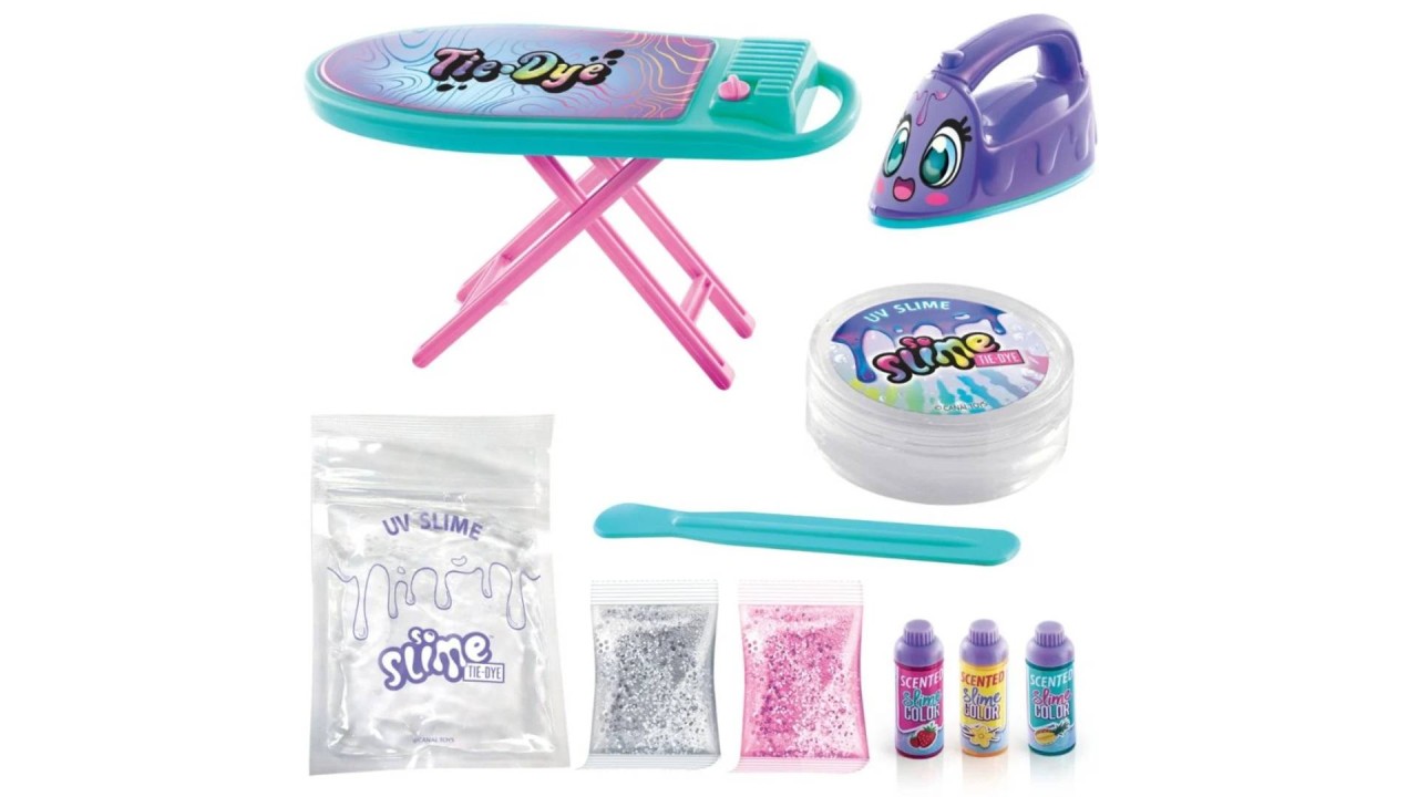 Descopera efectul de schimbare a culorii pe slime-ul tau, puneti slime-ul pe masa de calcat, asezati fierul de calcat pe slime si apasati butonul de calcat. Pe slime-ul tau alb apar linii roz magice. Dupa cateva minute, acestea vor disparea de la sine.