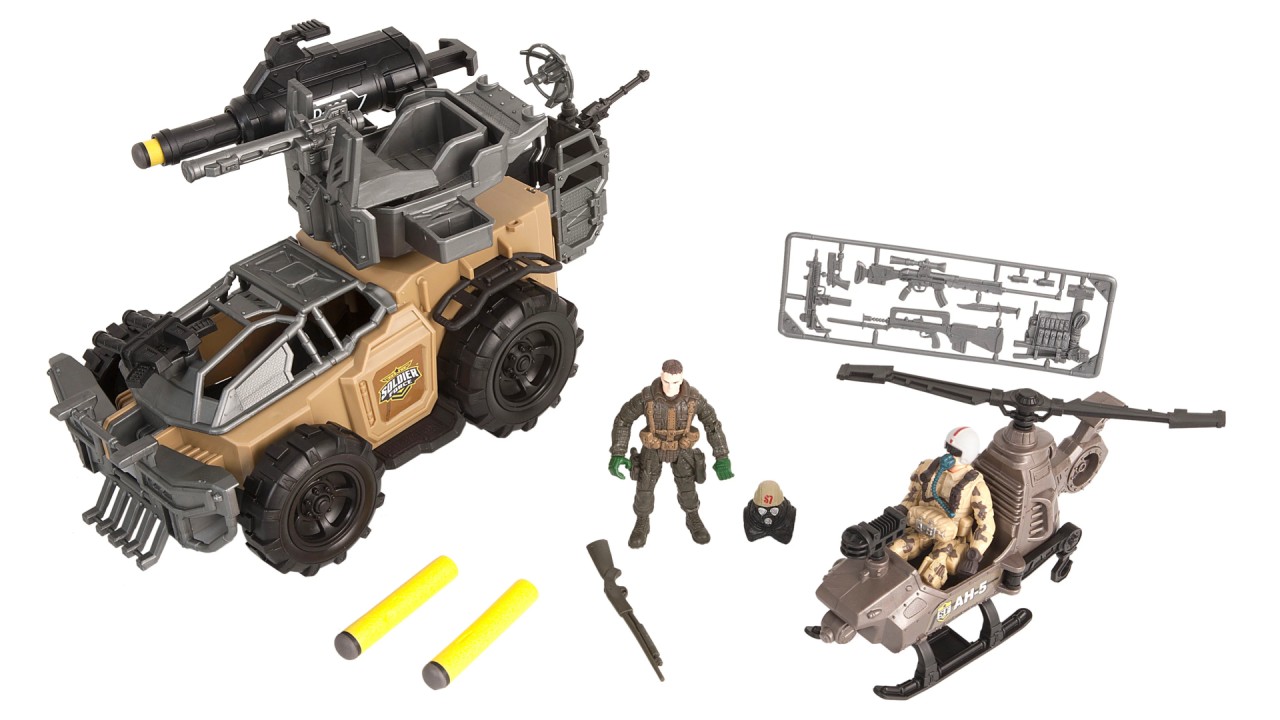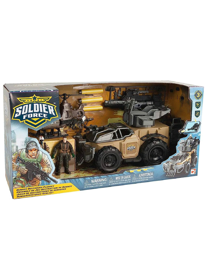 Setul include: vehicul cu acțiune de lansare a rachetelor, 2 săgeți din spumă, elicopter, 2 figurine de acțiune și accesorii