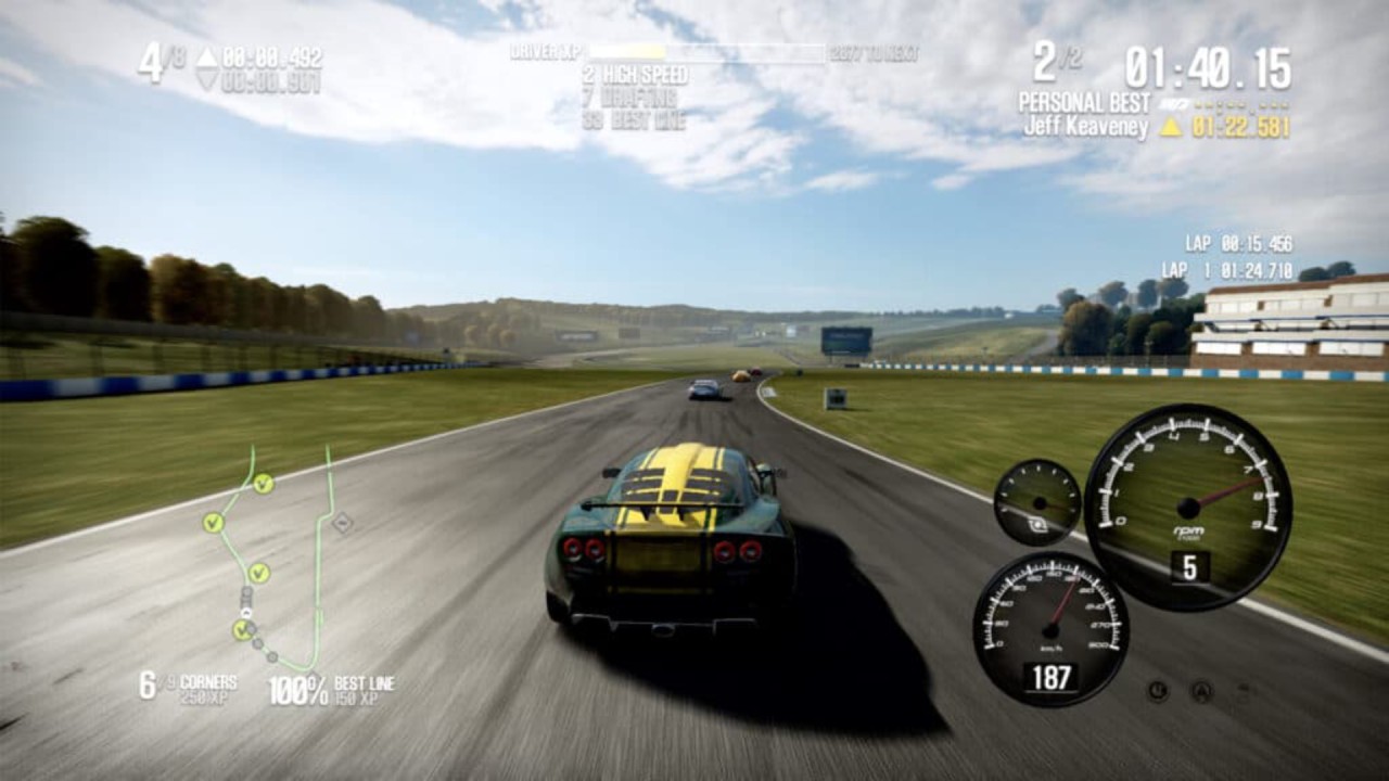 Experimentați curse viscerale la prima persoană ca niciodată. Camera cu cască nou-nouță recreează mișcările realiste ale capului șoferului care oferă o senzație de viteză de neegalat: aplecați-vă și înclinați-vă în vârful virajelor.