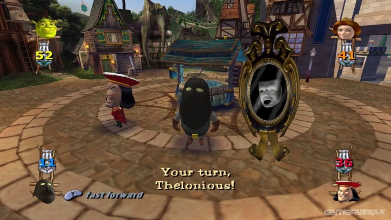 În Shrek: Party poți juca singur sau cu până la 3 prieteni, toți concurând pentru a câștiga cel mai mult suc de bug-uri pentru a-ți obține dorința finală.