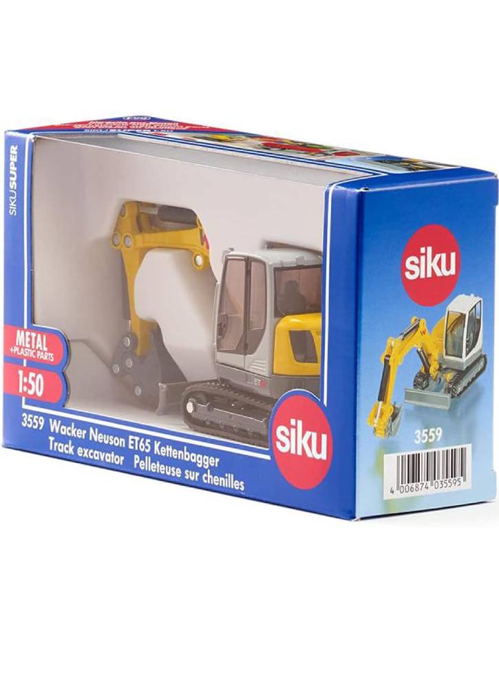 La scara 1:50, excavatorul cu lanț de la Siku se deplasează pe lanțuri mobile cauciucate. Sasiul, bratul, cupa, corpul excavatorului sunt din metal.