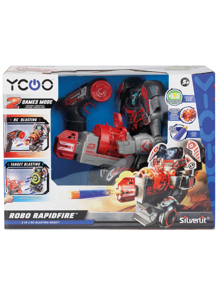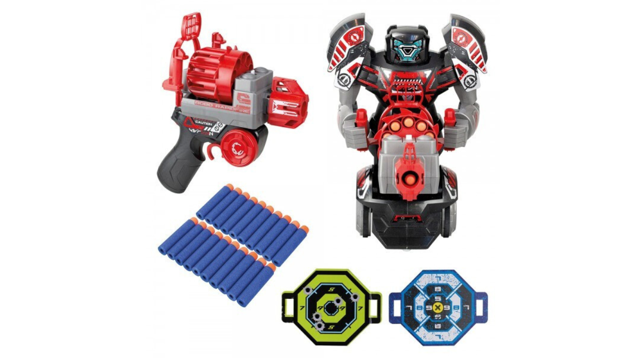 Robo Rapidfire nu este un robot obișnuit, ci poate lansa până la zece săgeți din tamburul său rotativ. Sunt incluse 20 de săgeți pentru distracție.