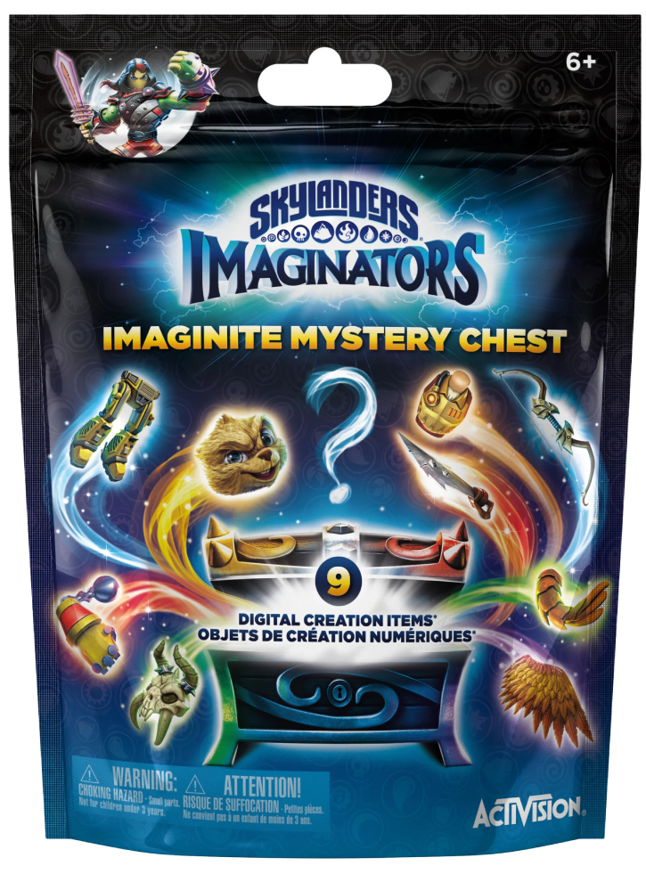 Folosește puterea Imaginitei cu pachetele Mystery Chest Packs pentru a debloca noi piese, arme și echipamente pentru voi, Imaginators Skylanders.