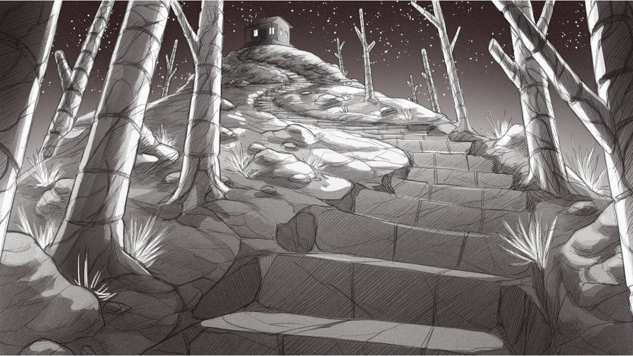 Ești pe o cărare în pădure, iar la capătul acelei cărare se află o cabană. Și în subsolul acelei cabane este o prințesă.