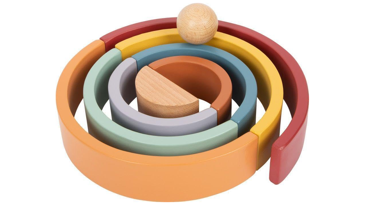 Fabricat din lemn de înaltă calitate, arcele rotunjite netede se stivuiesc cu ușurință unul în altul pentru a forma un curcubeu frumos.