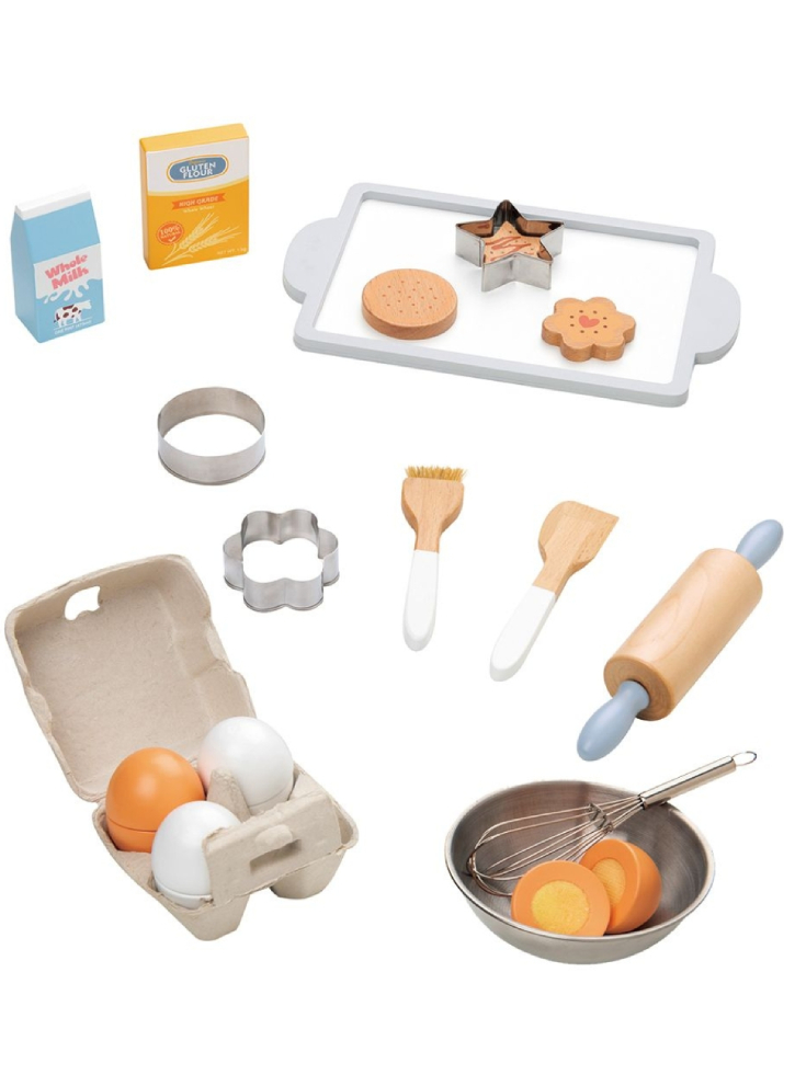 Acesta include tot ce au nevoie micii entuziaști ai coacerii: ouă, lapte, făină, diverse forme, un polizor, o perie și un cuțit de paletat.