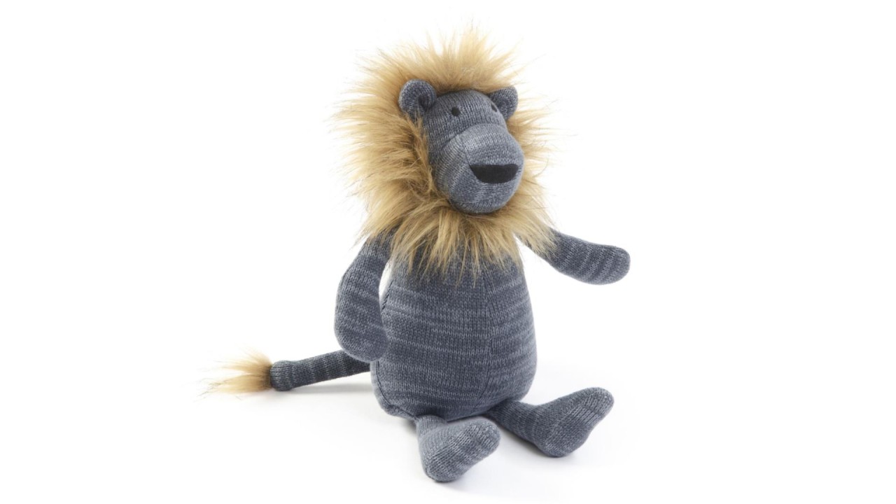Jucărie moale Smallstuff super drăguță în formă de leu în albastru închis, într-o calitate moale, tricotată din bumbac.
