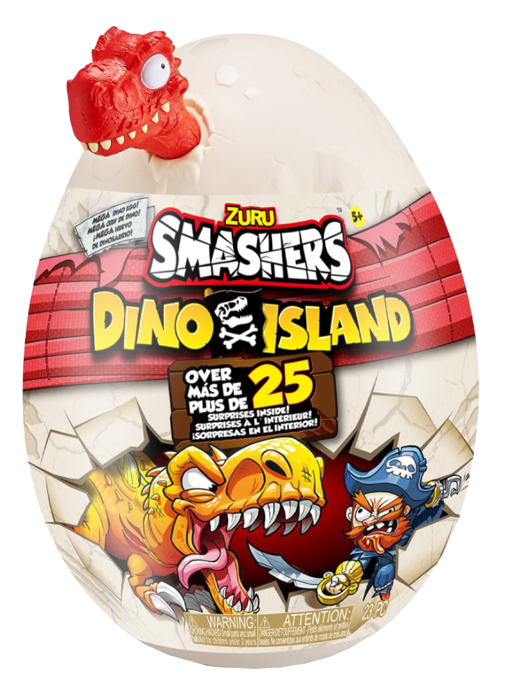 Caută printre aluatul de joacă îmbibat cu spumă, nisipul moale și slime-ul super elastic pentru piesele tale de dino! Ferește-te de figurina malefică a piratului și de cele 4 mini ouă Smashers epice care conțin figurine exclusive!
