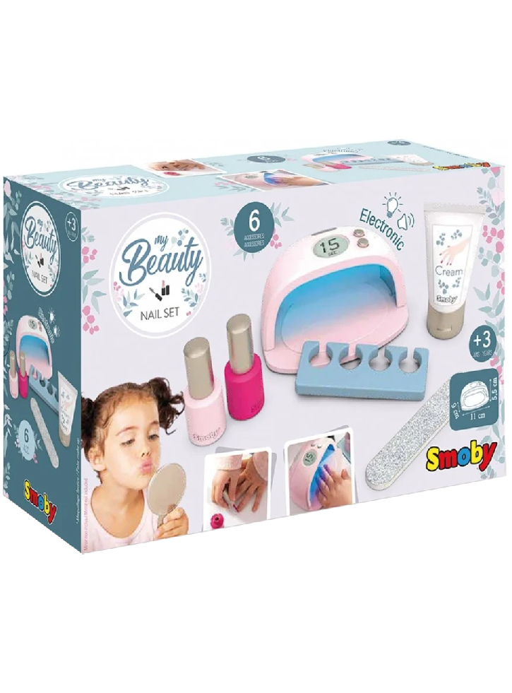 Punctul culminant al setului de unghii pentru copii este uscătorul de ojă UV roz care pare înșelător de real, cu lumină și sunet la atingerea unui buton.
