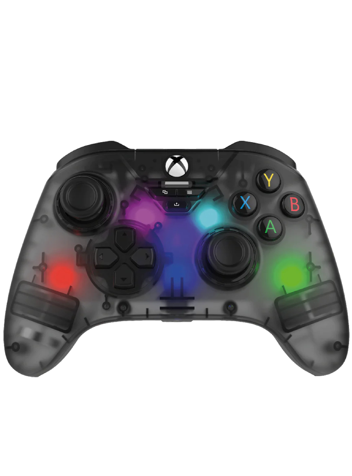 Snakebyte GamePad RGB X (Smoke Grey) Xbox Series X este un controller wireless de înaltă performanță pentru Xbox Series X/S și Xbox One, care combină un design modern cu funcționalități avansate, inclusiv iluminare RGB personalizabilă.