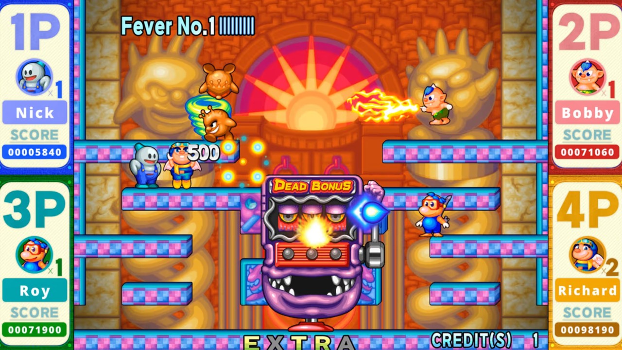 Snow Bros. Special 2 is a remake of the Toaplan launch from 1994 Snow Bro. 2. The IP license has now passed Tatsujin, who will continue his legacy.