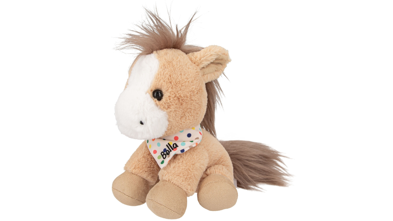 Calul de pluș bej Bella este atât de moale și drăgălaș.