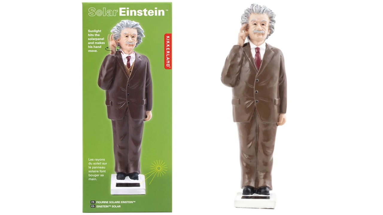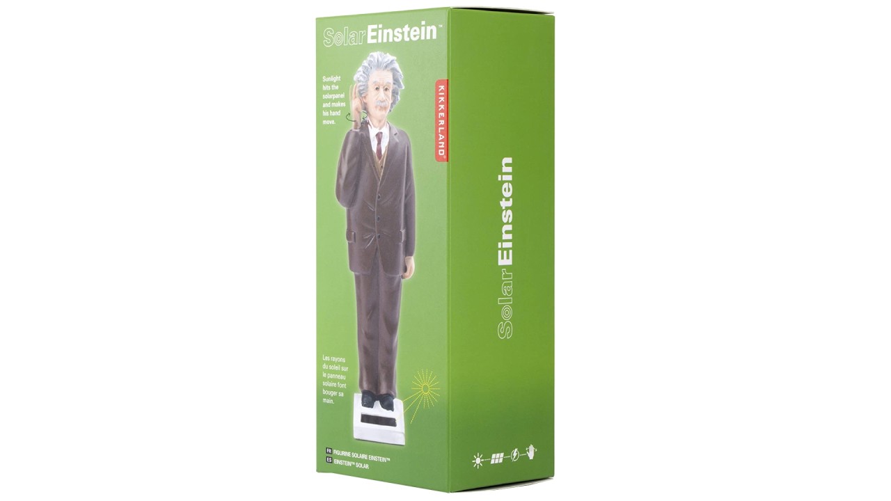Solar Einstein face parte din colecția de figurine alimentate cu energie solară, de la Regina la Papa.